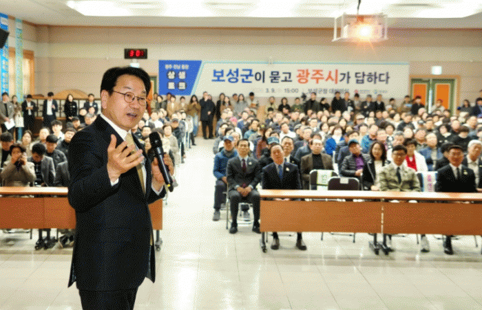 °±âÁ¤ ½ÃÀåÀº ¡°ÅëÇÕÀÇ ÈûÀº ±¤ÁÖ°¡ º¸¼ºÀ» »ý°¢ÇÏ°í º¸¼ºÀÌ ±¤ÁÖ¸¦ »ý°¢ÇÏ´Â »ó»ýÀÇ ¸¶À½¿¡¼ ³ª¿Â´Ù¡±¸ç ¡°±¤ÁÖÀÇ »ê¾÷¡¤¹®È ÀÎÇÁ¶ó¿Í º¸¼ºÀÇ ³ó¾÷¡¤°ü±¤ ÀÚ¿øÀÌ °áÇÕÇÏ¸é »õ·Î¿î ¼ºÀå µ¿·ÂÀÌ ¸¸µé¾îÁú °Í¡±À̶ó°í ¸»Çß´Ù.