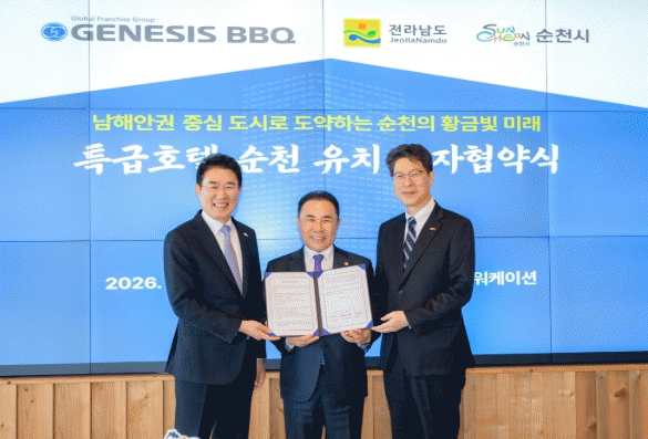 À̹ø Çù¾àÀ¸·Î ¼øÃµ½Ã´Â ±Û·Î¹ú K-Ǫµå ÇÁ·£Â÷ÀÌÁî ±â¾÷ Á¦³Ê½Ã½ºBBQ ±×·ì(ȸÀå À±È«±Ù)°ú ¼ÕÀâ°í ¼øÃµ °æÁ¦ Áöµµ¸¦ ¹Ù²Ü ´ë±Ô¸ð ÅõÀÚ À¯Ä¡¿¡ ³ª¼°Ô µÆ´Ù.