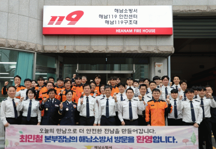 ÃÖ¹Îö Àü³²¼Ò¹æº»ºÎÀåÀº ¡°¶¥³¡ ÇØ³²Àº Àü³²ÀÇ ½ÃÀÛÀÌÀÚ µµ¹Î ¾ÈÀüÀÇ ÃÖÀü¼±¡±À̶ó¸ç¡° ¾î·Á¿î ¿©°Ç ¼Ó¿¡¼µµ ¹¬¹¬È÷ ¸ÃÀº ¹Ù ÀÓ¹«¸¦ ´ÙÇØÁÖ´Â ´ë¿øµéÀÌ ÀÚ¶û½º·´°í ¾ÕÀ¸·Îµµ ¡®Çå½ÅÇÏ°í ½Å·Ú¹Þ´Â ¿µ¿¹·Î¿î Àü³²¼Ò¹æ¡¯ÀÌ µÉ ¼ö ÀÖµµ·Ï °¢ÀÚÀÇ ÀÚ¸®¿¡¼ ÃÖ¼±À» ´ÙÇØ´Þ¶ó¡±°í ´çºÎÇß´Ù.