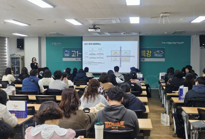 Çà»ç¿¡ Âü¿©ÇÑ ÇлýÀº ¡°Áß¿äÇÑ ³»½Å Çâ»óÀ» À§ÇØ ¡®½Ã°£ °ü¸® ¸ÅÆ®¸¯½º-°èȹ-º¹½À-½Çõ¡¯ÀÌ ÇÊ¿äÇÏ´Ù´Â Á¶¾ðÀÌ µµ¿òÀÌ µÆ´Ù¡±¸ç ¡°¿À´ÃÀ» °è±â·Î ´õ¿í ¿½ÉÈ÷ °øºÎÇØ¾ß°Ú´Ù´Â °ÇÑ µ¿±âºÎ¿©°¡ »ý°å´Ù¡±°í ¼Ò°¨À» ¹àÇû´Ù.