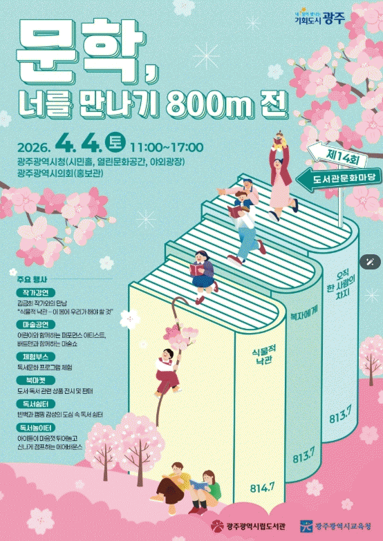 ±¤ÁÖ±¤¿ª½Ã¿Í ±¤ÁÖ±¤¿ª½Ã±³À°Ã»Àº ¿À´Â 4¿ù4ÀÏ ½Ãû¿¡¼­ ¿Â °¡Á·ÀÌ ÇÔ²²ÇÏ´Â µ¶¼­ÃàÁ¦ÀÎ ¡®Á¦14ȸ µµ¼­°ü ¹®È­¸¶´ç¡¯À» °øµ¿ °³ÃÖÇÑ´Ù.