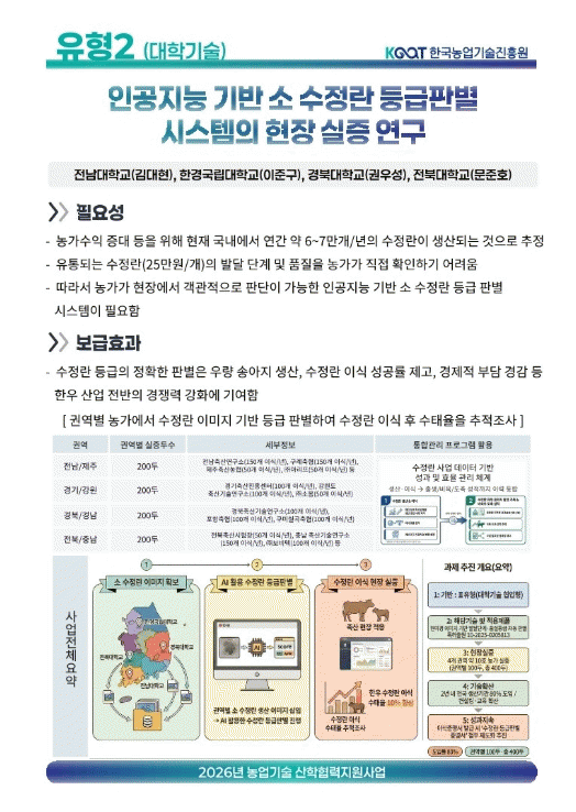 À̹ø °úÁ¦´Â ÃÑ 2¾ï 8,800¸¸ ¿ø ±Ô¸ð(´ëÇС¤±Ç¿ªº° 7,200¸¸ ¿ø)·Î, ÀΰøÁö´É ±â¼ú°ú Ãà»ê ºÐ¾ßÀÇ À¶ÇÕÀ» ÅëÇØ ¼öÁ¤¶õ ǰÁú ÆÇº°ÀÇ °´°ü¼ºÀ» È®º¸Çϰí ÀÌ½Ä ¼º°ø·üÀ» Çâ»ó½ÃŰ´Â °ÍÀ» ¸ñÇ¥·Î ÇÑ´Ù.