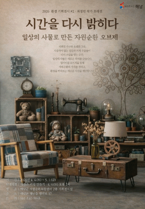À̹ø Àü½Ã´Â ¾÷»çÀÌŬ ÀÛ°¡ ÃÖÁ¤¹Î ÀÛ°¡ÀÇ ÀÛǰÀ¸·Î, ¹ö·ÁÁö°Å³ª ¾²ÀÓÀ» ´ÙÇÑ »ýȰ »ç¹°°ú °¡±¸, ±×¸©, ¼¶À¯ µîÀ» ÀçÇØ¼®ÇØ »õ·Î¿î ¾²ÀÓ°ú ½Ã°£À» ºÎ¿©ÇÑ »õȰ¿ë ÀÛǰµéÀ» ¼Ò°³ÇÑ´Ù. Á¶¸í, ½Ã°è, °¡±¸ ¿ÀºêÁ¦¸¦ Áß½ÉÀ¸·Î ±¸¼ºµÈ À̹ø Àü½Ã´Â °ü¶÷°´µéÀÌ ÀÚ¿ø¼øÈ¯ÀÇ °³³äÀ» ÀÏ»ó¼Ó¿¡¼ ÀÚ¿¬½º·´°Ô °æÇèÇÒ ¼ö ÀÖµµ·Ï ±âȹµÆ´Ù.
