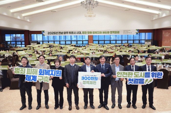 4¿ù 7ÀÏ, ¹«¾È ½ºÄ«ÀÌ¿þµùȦ¿¡¼ ¹üÁËÇÇÇØÀÚ Áö¿ø À¯°ü±â°ü¡¤±Â³×À̹ö½º µî °ü°èÀÚ 300¿© ¸íÀÌ Âü¼®ÇÑ °¡¿îµ¥¡®2026 Àü³²¡¤±¤ÁÖÆ¯º°½Ã ½Ã´ë, ¹üÁË ÇÇÇØ ȸº¹Áö¿ø Á¦µµÈ Á¤Ã¥Æ÷·³¡¯À» ¸¶·ÃÇϰí, ¹üÁËÇÇÇØÀÚÀÇ È¸º¹ °ø¹éÀ» ÁÙÀ̱â À§ÇÑ Áö¿ª»çȸ Çù·Â ¹æ¾ÈÀ» ³íÀÇÇß´Ù.