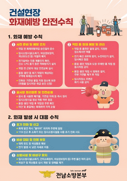 °Ç¼³ÇöÀåÀº ¿ëÁ¢¤ýÀý´Ü µî ȱâ Ãë±Þ ÀÛ¾÷°ú °¡¿¬¼º ÀÚÀç »ç¿ëÀÌ ¸¹¾Æ ÀÛÀº ºÎÁÖÀǵµ ´ëÇü ÈÀç·Î À̾îÁú °¡´É¼ºÀÌ ³ô´Ù. ÀÌ¿¡ µû¶ó ÀÛ¾÷ ´Ü°èº°·Î ¾ÈÀü¼öÄ¢À» öÀúÈ÷ ÁؼöÇÏ´Â °ÍÀÌ ¹«¾ùº¸´Ù Áß¿äÇÏ´Ù.
