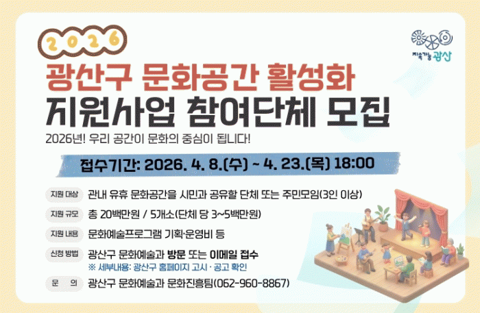 ±¤»ê±¸ ¡®2026³â ¹®È­°ø°£ °øÀ¯ Ȱ¼ºÈ­ Áö¿ø»ç¾÷¡¯ À¥ È«º¸ À̹ÌÁö.