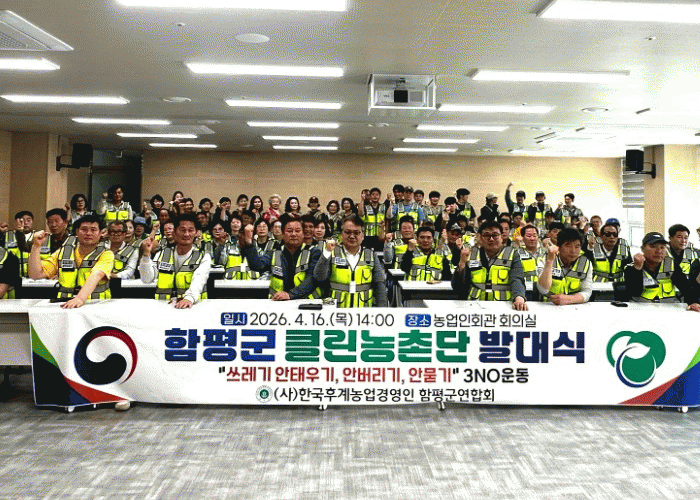 ÇÔÆò±ºÀº 16ÀÏ ¡°À̳¯ ÇÔÆò±º³ó¾÷ÀÎȸ°ü ȸÀǽǿ¡¼ (»ç)Çѱ¹Èİè³ó¾÷°æ¿µÀÎ ÇÔÆò±º¿¬ÇÕȸ¿Í ÇÔ²² ÁֹΠÂü¿©Çü ȯ°æ Á¤È ¸ðµ¨ÀÎ ¡®Å¬¸°³óÃÌ´Ü¡¯ ¹ß´ë½ÄÀ» °³ÃÖÇÏ°í ³óÃÌ Áö¿ªÀÇ °íÁúÀûÀÎ ¾²·¹±â ¹®Á¦ ÇØ°áÀ» À§ÇÑ 3³ë(NO) ¿îµ¿¡¯ ½ÇõÀ» ¼±Æ÷Çß´Ù¡±°í ¹àÇû´Ù.