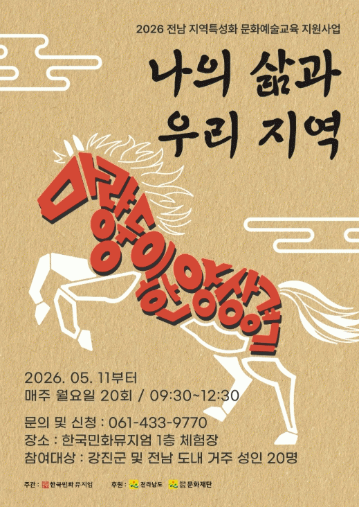 Âü°¡ÀÚµéÀº Àü¹®ÀûÀÎ ¹ÎÈ ½Ç±â ±³À°°ú ÇÔ²² ¿ì¸® Áö¿ªÀÇ ¿ª»çÀû ¹è°æÀÎ ¡®¸¶·®¡¯°ú ¡®ÇѾ硯À¸·Î À̾îÁö´Â »ó¡Àû Àǹ̸¦ Çö´ëÀûÀ¸·Î ÀçÇØ¼®ÇÏ¿© º»Àθ¸ÀÇ ÀÛǰÀ» ¿Ï¼ºÇÑ´Ù.