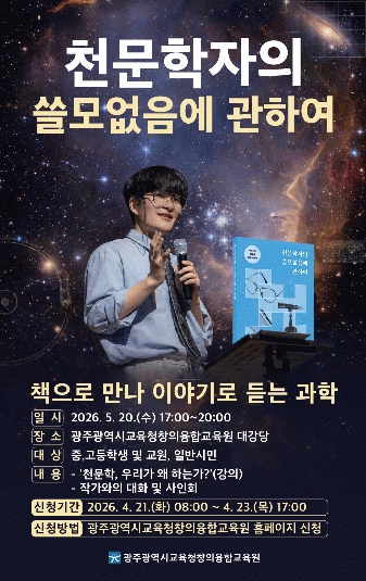 ±¤Áֽñ³À°Ã»Ã¢ÀÇÀ¶ÇÕ±³À°¿øÀº ¿À´Â 5¿ù 20ÀÏ ¿ÀÈÄ 5½Ã º»¿ø ´ë°­´ç¿¡¼­ À¯Æ©¹ö ¡®¿ìÁÖ¸ÕÁö¡¯ Áö¿õ¹è ±³¼ö ÃÊû °úÇРƯ°­À» ¿î¿µÇÑ´Ù.