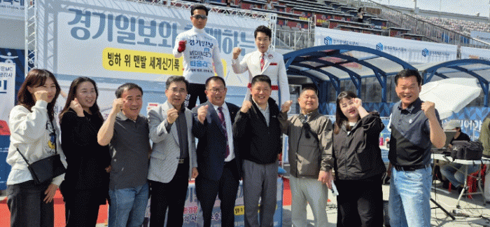 Á¶½Âȯ ¾¾´Â 4¿ù 19ÀÏ ¼ö¿øÁ¾ÇտÀå¿¡¼ ¿¸° °æ±âÀϺ¸ ¸¶¶óÅæ ´ëȸ °³¸·½Ä¿¡ ÃÊûµÅ ¸¶¶óÅæ Âü°¡ÀÚ¿Í ½Ã¹Î 1¸¸ 5õ¿© ¸íÀÌ ÁöÄѺ¸´Â °¡¿îµ¥ ¡®ºùÇÏ À§ ¸Ç¹ß ¿À·¡ ¼ Àֱ⡯ ÆÛÆ÷¸Õ½º¸¦ ¼±º¸¿´´Ù.