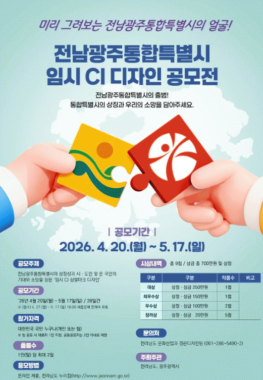 À̹ø °ø¸ðÀüÀº 1986³â ÇàÁ¤±¸¿ª ºÐ¸® ÀÌÈÄ 40³â ¸¸¿¡ Àç°áÇÕÇØ ¿À´Â 7¿ù °ø½Ä Ãâ¹üÀ» ¾ÕµÐ ¡®Àü³²±¤ÁÖÅëÇÕÆ¯º°½Ã¡¯ÀÇ Ã¹ »ó¡À» ±¹¹Î°ú ÇÔ²² ¸¸µé¾î°£´Ù´Â Á¡¿¡¼ Àǹ̰¡ Å©´Ù.