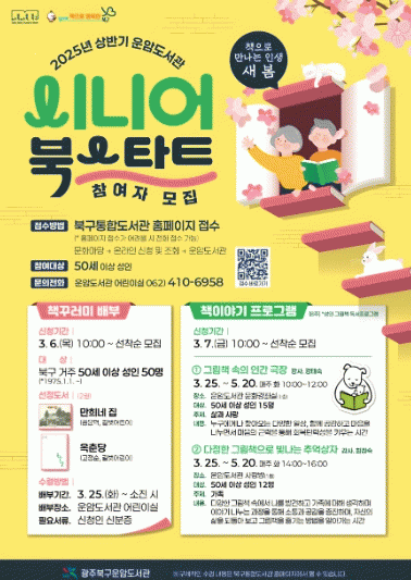 ¿î¾Ïµµ¼°ü(ºÏ±¸ ºÏ¹®´ë·Î 118)¿¡¼ ÁøÇàµÇ´Â À̹ø »ç¾÷Àº ¡®Ã¥À¸·Î ¸¸³ª´Â Àλý »õ º½¡¯À̶ó´Â ÁÖÁ¦·Î 50¼¼ ÀÌ»ó ºÏ±¸ Áֹο¡°Ô ¡®Ã¥ ²Ù·¯¹Ì¡¯¸¦ ¹èºÎÇÏ°í ¡®Ã¥ À̾߱â ÇÁ·Î±×·¥¡¯À» ¿î¿µÇÑ´Ù.
