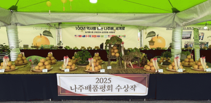½É»ç¿¡´Â ³ó°¡°¡ Á÷Á¢ ÃâǰÇÑ 5°³ ǰÁ¾(½Å°í, Ȳ±Ý, È»ê, ½ÅÈ, âÁ¶) 100Á¡ÀÌ ÃâǰµÆÀ¸¸ç ½Ä¹Ì, °úÇü, »öÅÃ, ´çµµ, Å©±â µîÀ» Á¾ÇÕ Æò°¡ÇØ ³ªÁÖ½ÃÀå»ó, µµÁö»ç»ó, ±¹È¸ÀÇ¿ø»ó µî 15Á¡ÀÇ ¼ö»óÀÛÀ» ¼±Á¤Çß´Ù.