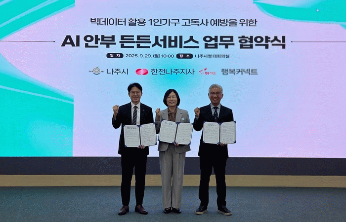 ³ªÁÖ½Ã(½ÃÀå À±º´ÅÂ)´Â ÃÖ±Ù Çѱ¹Àü·Â°ø»ç ³ªÁÖÁö»ç, SKÀç´Ü¹ýÀÎ ÇູĿ³ØÆ®¿Í ÇÔ²² 1ÀÎ °¡±¸ »çȸ¾ÈÀü¸Á °È¸¦ À§ÇÑ ¡®AI¾ÈºÎ µçµç¼ºñ½º¡¯ 3ÀÚ ¾÷¹«Çù¾àÀ» ü°áÇÏ¸ç ¹Î°ü°øÀÌ ÇÔ²²ÇÏ´Â ÅëÇÕÇü »çȸ¾ÈÀü¸Á ±¸Ãà¿¡ ³ª¼¹´Ù°í 11ÀÏ ¹àÇû´Ù.