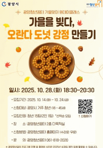 ÃÑ 15ÆÀ(2ÀÎ 1ÆÀ ±âÁØ)À» ¼±Âø¼ø ¸ðÁýÇϸç, Âü°¡ ½ÅûÀº 10¿ù 14ÀϺÎÅÍ 10¿ù 23ÀϱîÁö ±¤¾çû³â²ÞÅÍ °ø½Ä ´©¸®Áý(ȨÆäÀÌÁö)À» ÅëÇØ °¡´ÉÇÏ´Ù.