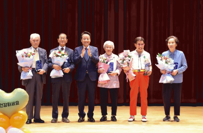 93¼¼ÀÇ ÃÖ°í·É ¼ö»óÀÚÀÎ Á¤¼øÁÖ ¾î¸£½ÅÀº ¹®È¼¾ÅÍ ¼ö¿µ°ú Çコ ÇÁ·Î±×·¥¿¡ Àû±Ø Âü¿©ÇÏ¸ç °Ç°°ü¸®¸¦ À̾°í ÀÖ¾î ŸÀÇ ±Í°¨ÀÌ µÆ´Ù.