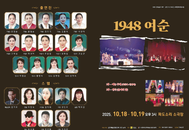 ±Ø´Ü ¼Ò¸®´Â ¿À´Â 18~19ÀÏ ¿ÀÈÄ 4½Ã ¿©¼öÆÄµµ¼Ò¸®¼Ò±ØÀå¿¡¼ ¿¬±Ø ¡®1948¿©¼ø¡¯À» ¼±º¸ÀδÙ.