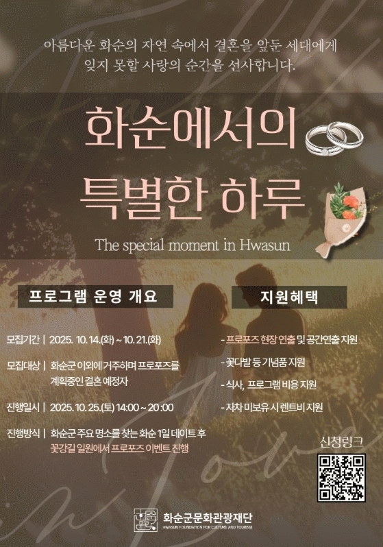 À̹ø ÇÁ·Î±×·¥Àº °áÈ¥À» ¾ÕµÐ ¿¹ºñ Ä¿Çÿ¡°Ô ÀØÁö ¸øÇÒ ÇϷ縦 ¼±»çÇϰí, ȼøÀÇ ÀÚ¿¬°ú °ü±¤ÀÚ¿øÀ» ¹è°æÀ¸·Î ÇÑ ·Î¸ÇƽÇÑ Ã¼ÇèÇü À̺¥Æ®·Î ±âȹµÆ´Ù.