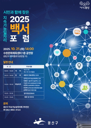 ±¤ÁÖ ±¤»ê±¸´Â 21ÀÏ ¿ÀÈÄ 2½ÃºÎÅÍ ¼ö¿Ï¹®ÈüÀ°¼¾ÅÍ¿¡¼ '½Ã¹Î°ú ÇÔ²² ãÀº Áö¼Ó°¡´É ÀÏÀÚ¸®'¸¦ ÁÖÁ¦·Î 2025 Áö¼Ó°¡´É ÀÏÀÚ¸® ¹é¼ Æ÷·³(°ø°³Åä·Ðȸ)À» °³ÃÖÇÑ´Ù°í ¹àÇû´Ù.