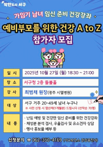 ¼­±¸´Â ¿À´Â 27ÀÏ ¼­±¸Ã» µéºÒȦ¿¡¼­ ³­ÀÓÄ¡·á Àü¹®°¡¸¦ ÃÊÃ»ÇØ ¡®¿¹ºñºÎ¸ð¸¦ À§ÇÑ °Ç°­ A to Z¡¯ °Ç°­°­Á¸¦ ¿î¿µÇÑ´Ù.