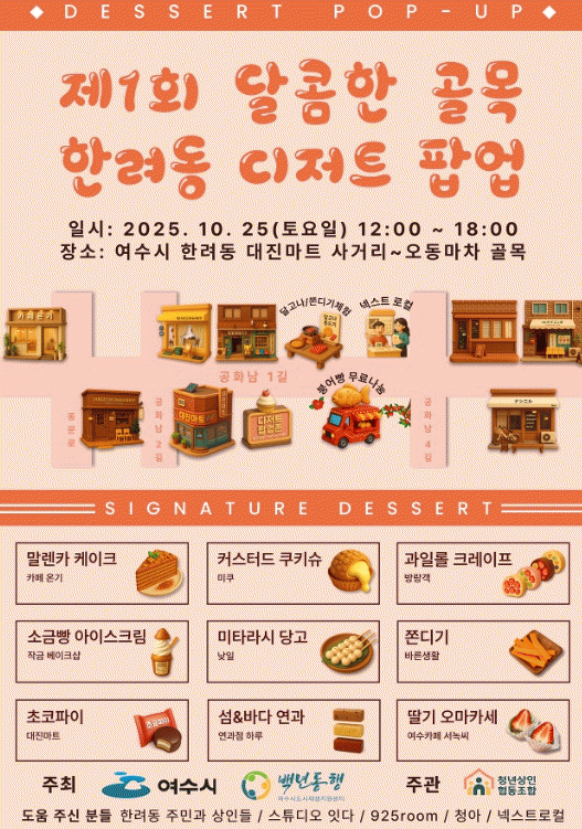 Çà»çÀå¿¡´Â Áö¿ª û³â â¾÷°¡µéÀÌ ¿î¿µÇÏ´Â ¡®µðÀúÆ® ÆË¾÷Á¸¡¯ÀÌ ¼³Ä¡µÇ¸ç ¿©¼ö Ư»êǰÀ» Ȱ¿ëÇÑ ¼¶ ¡¤ ¹Ù´Ù ¿¬°ú¸¦ ºñ·ÔÇØ Ä¿½ºÅ͵å ÄíŰ½´, ¼Ò±Ý»§ ¾ÆÀ̽ºÅ©¸², °úÀÏ·Ñ Å©·¹ÀÌÇÁ, ¸»·»Ä« ÄÉÀÌÅ©, ¹ÌŸ¶ó½Ã ´ç°í, µþ±â ¿À¸¶Ä«¼¼ µî ´Ù¾çÇÑ ¸Þ´º¸¦ ¼±º¸ÀδÙ.