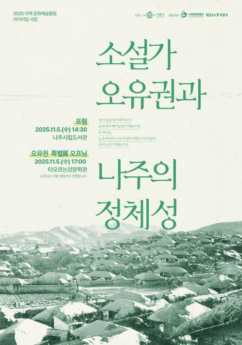 ³ªÁÖ¹®ÈÀç´ÜÀº ¿À´Â 11¿ù 5ÀÏ ³ªÁֽø³µµ¼°ü°ú Ÿ¿À¸£´Â°¹®Çаü ÀÏ´ë¿¡¼ ¡®¼Ò¼³°¡ ¿ÀÀ¯±Ç°ú ³ªÁÖÀÇ Á¤Ã¼¼º¡¯À» ÁÖÁ¦·Î Æ÷·³, Àü½Ã, ¹®ÇÐ Åõ¾î¸¦ °³ÃÖÇÑ´Ù°í 27ÀÏ ¹àÇû´Ù.