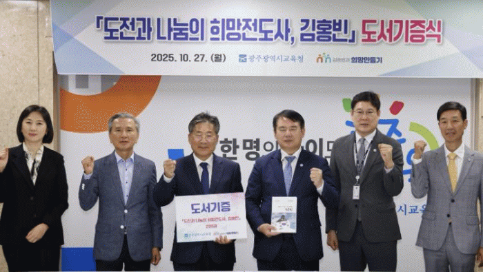 ÀÌÁ¤¼± ±³À°°¨Àº ¡°±èÈ«ºó ´ëÀå´ÔÀÇ »îÀº ¡®µµÀü¡¤¼ºÀ塤³ª´®¡¯À̶ó´Â ±¤ÁÖ±³À°ÀÇ Çٽɰ¡Ä¡¸¦ ¿Â¸öÀ¸·Î ½ÇõÇÑ ±Í°¨¡±À̶ó¸ç ¡°µµ¼ Á¦°øÀ» ÅëÇØ ÇлýµéÀÌ Æ÷±âÇÏÁö ¾Ê´Â ¿ë±â¿Í ŸÀÎÀ» ÇâÇÑ ³ª´®ÀÇ ¸¶À½À» ¹è¿ö°¡±æ ¹Ù¶õ´Ù¡±°í ¸»Çß´Ù.