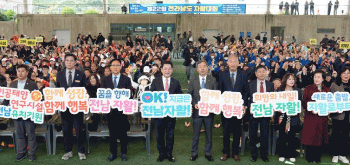 Çѱ¹Áö¿ªÀÚȰ¼¾ÅÍÇùȸ Àü³²ÁöºÎ°¡ ÁÖ°üÇÑ ÀÚȰ´ëȸ¿¡¼± ±è¿µ·Ï Àü³²µµÁö»ç¿Í Á¶¼®ÈÆ ¸ñÆ÷½ÃÀå ±ÇÇÑ´ëÇà, Àü³²µµÀÇ¿ø, ¹Úö¼ö Çѱ¹Áö¿ªÀÚȰ¼¾ÅÍÇùȸ Àü³²ÁöºÎÀå, ÀÚȰ±Ù·Î Âü¿©ÀÚ, Áö¿ªÀÚȰ¼¾ÅÍ Á¾»çÀÚ µî °ü°èÀÚ 1õ500¿© ¸íÀÌ Âü¿©ÇØ ¡®ÇÔ²² ¶Ù°í ÇÔ²² ¿ô´Â Àü³²ÀÚȰ!¡¯À» ÁÖÁ¦·Î ÀÚȰ°øµ¿Ã¼ ÀÇÁö¸¦ ÆîÃÆ´Ù.