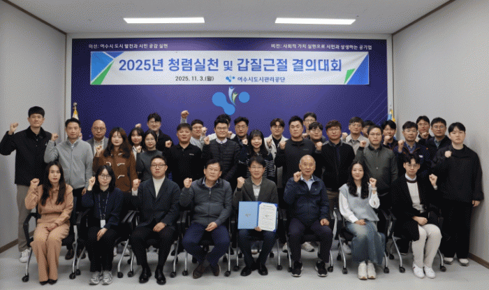 ¿©¼ö½Ãµµ½Ã°ü¸®°ø´Ü(ÀÌ»çÀå ¼Ûº´±¸)Àº 11¿ù 3ÀÏ º»»ç ȸÀǽǿ¡¼­ ¡®Ã»·Å½Çõ ¹× °©Áú±ÙÀý °áÀÇ´ëȸ¡¯¸¦ °³ÃÖÇß´Ù°í ¹àÇû´Ù.