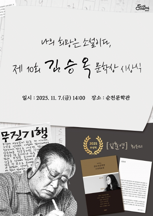 ½Ã °ü°èÀÚ´Â ¡°Á¦10ȸ ±è½Â¿Á¹®Çлó ½Ã»ó½ÄÀº ¼øÃµÀÌ ¹®Çаú ÇÔ²² ¼ºÀåÇØ ¿Â ½Ã°£À» º¸¿©ÁÖ´Â ¶æ±íÀº ¼ø°£ÀÌ´Ù¡±¸ç, ¡°¾ÕÀ¸·Îµµ ¼øÃµÀº ¹®ÇÐÀÌ ½Ã¹ÎÀÇ ÀÏ»ó ¼Ó¿¡¼ ¼û ½¬°í, »õ·Î¿î âÀÛÀÌ À̾îÁö´Â ¹®Èµµ½Ã·Î ¹ßÀüÇÒ ¼ö ÀÖµµ·Ï ÃÖ¼±À» ´ÙÇϰڴ١±°í ÀüÇß´Ù.
