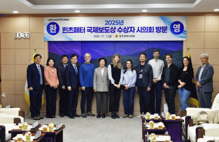 °£´ãȸ¿¡ Âü¼®ÇÑ ÈùÃ÷ÆäÅÍ ±¹Á¦º¸µµ»ó ¼ö»óÀÚµéÀº ¡°¹ÎÁÖÁÖÀÇÀÇ »ó¡ÀûÀÎ µµ½Ã ±¤ÁÖ¿¡¼ ½Ã¹ÎÀ» ´ëÇ¥ÇÏ´Â ÀÇȸ¿¡ ¹æ¹®ÇØ Å« ¿µ±¤ÀÌ´Ù¡±¶ó°í ¼Ò°¨À» ÀüÇÏ¸ç ¡°Áö±Ý ÀÌ ¼ø°£¿¡µµ ÀηùÀÇ Á¸¾öÀÌ À§Çù¹Þ°í ÀÖ´Â Àü ¼¼°è ÇöÀå¿¡ ±¤ÁÖ ½Ã¹ÎµéÀÇ ¿¬´ë¿Í ±íÀº °ü½ÉÀ» ºÎʵ台´Ù¡±°í ¹àÇû´Ù.
