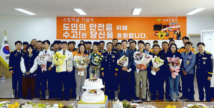 ³ªÁÖ¼Ò¹æ¼ Á÷¿ø°ú ÀÇ¿ë¼Ò¹æ´ë¿ø, ¹Î°£ ǥâ ´ë»óÀÚ µî 120¿©¸íÀÌ Âü¼®ÇØ ¼Ò¹æÀÇ ³¯À» ÃàÇÏÇÏ°í ¼Ò¹æ°¡Á·ÀÇ Çå½Å¿¡ °¨»çÀÇ ¸¶À½À» ÀüÇß´Ù.