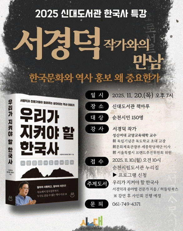 À̹ø °¿¬¿¡¼´Â ¡®Çѱ¹ ¾Ë¸®¹Ì¡¯·Î ºÒ¸®´Â ¼ ±³¼öÀÇ »ý»ýÇÑ °æÇè´ãÀ» ¹ÙÅÁÀ¸·Î, ±×ÀÇ ÃֽŠÀú¼ ?¿ì¸®°¡ ÁöÄÑ¾ß ÇÒ Çѱ¹»ç?¸¦ ÅëÇØ Çѱ¹ ¹®È¿Í ¿ª»ç¸¦ ¿Ã¹Ù¸£°Ô ÀÌÇØÇÏ°í ¿ª»ç ¿Ö°îÀÇ º»ÁúÀ» ¤¾îº¸´Â ½Ã°£À» ¸¶·ÃÇÒ ¿¹Á¤ÀÌ´Ù.