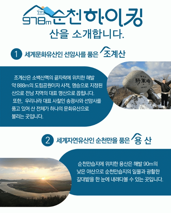 ½Ã °ü°èÀÚ´Â ¡°978m ÇÏÀÌÅ·Àº ¼øÃµÀÇ ÀÚ¿¬°ú ¼¼°èÀ¯»ê, ±×¸®°í »ç¶÷ÀÇ À̾߱Ⱑ Çϳª·Î À̾îÁö´Â ¼øÃµÇü À£´Ï½º °ü±¤ ÄÜÅÙÃ÷¡±¶ó¸ç, ¡°ÀÚ¿¬°ú »ç¶÷ÀÌ ÇÔ²² ¼û ½¬´Â µµ½Ã ¼øÃµÀÇ ÁøÁ¤ÇÑ ¸Å·ÂÀ» ¾Ë¸®°í, ¼Ò±Ô¸ð ÇÁ¸®¹Ì¾ö °ü±¤À» ÅëÇÑ °íºÎ°¡°¡Ä¡ »ýŰü±¤ÀÇ »õ·Î¿î ¹æÇâÀ» Á¦½ÃÇϰڴ١±°í ¹àÇû´Ù.