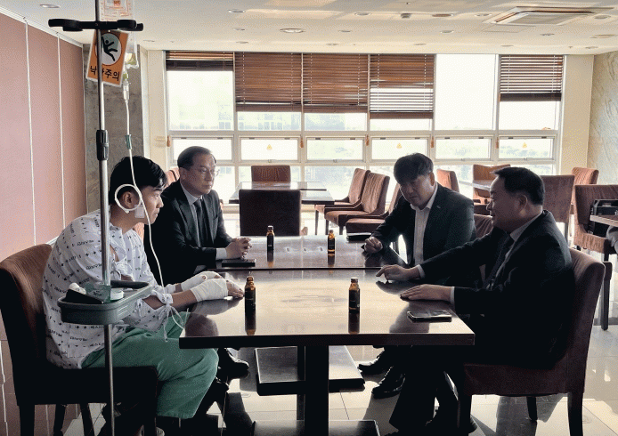 ÈÀç ¹ß»ý ¼Ò½ÄÀ» Á¢ÇÑ ÁÖ¿µ±¹ Àü³²¼Ò¹æº»ºÎÀå, ¼½ÂÈ£ ¿©¼ö¼Ò¹æ¼Àå, ÃÖ¹«°æ Àü³²µµÀÇ¿øÀº º´¿øÀ» ¹æ¹®ÇØ ºÎ»ó ´ë¿øµéÀ» À§¹®ÇÏ°í ºü¸¥ ȸº¹À» ±â¿øÇß´Ù.