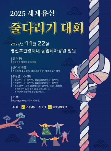 ±è¿Á°æ Àü³²µµ³ó¾÷¹Ú¹°°üÀåÀº ¡°À̹ø °æ¿¬´ëȸ´Â Áٴٸ®±â¶ó´Â ÀüÅë ¹®È¸¦ Çö´ëÀû ¹æ½ÄÀ¸·Î °è½ÂÇϰí, ±× °¡Ä¡¸¦ ³Î¸® ¾Ë¸®±â À§ÇØ ¸¶·ÃµÆ´Ù¡±¸ç ¡°¼¼°èÀ¯»êÀ¸·Î ÁöÁ¤µÈ Áٴٸ®±â ¹®È¸¦ ÅëÇØ Áٴٸ®±â ¹®ÈÀÇ ÀüÅëÀ» ÀÕ´Â ¼ÒÁßÇÑ ±âȸ°¡ µÇ±æ ¹Ù¶õ´Ù¡±°í ¸»Çß´Ù.