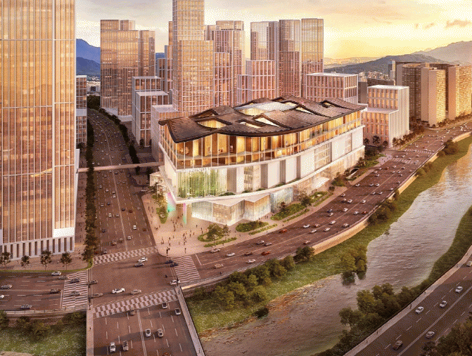 ±¤ÁÖ¿¡ óÀ½ µé¾î¼´Â º¹ÇÕ¼îÇθô ¡®´õÇö´ë ±¤ÁÖ¡¯´Â ¿¬¸éÀû 27¸¸2955§³, ÁöÇÏ 6Ãþ~Áö»ó 8Ãþ ±Ô¸ðÀÇ º¹ÇÕ¹®È°ø°£ÀÌ´Ù. ¼¼°èÀû °ÇÃà°¡ ¡®Ç츣Á¶±× ¾Ø µå ¸þ·Õ(Herzog & de Meuron)¡¯ÀÇ ¼³°è·Î ³»¡¤¿ÜºÎ °ø°£ÀÇ ¿Ï¼ºµµ¸¦ ³ô¿´´Ù. ¼¿ï ¿©Àǵµ ¡®´õÇö´ë ¼¿ï¡¯º¸´Ù ¾à 1.4¹è Å« ±Ô¸ð·Î, 2027³â ¸» ¿Ï°øÇØ 2028³â Á¤½Ä °³Á¡À» ¸ñÇ¥·Î ÇÑ´Ù.