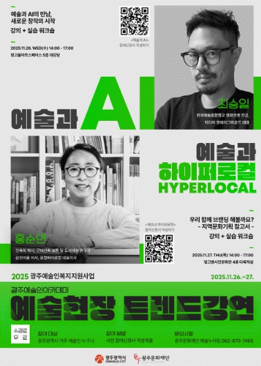 À̹ø °úÁ¤Àº ±¤ÁÖ±¤¿ª½Ã°¡ ÁÖÃÖÇÏ°í ±¤ÁÖ¹®ÈÀç´ÜÀÌ ÁÖ°üÇÏ´Â ¡®2025 ±¤ÁÖ¿¹¼úÀκ¹ÁöÁö¿ø»ç¾÷¡¯ÀÇ ¡®±¤ÁÖ¿¹¼úÀξÆÄ«µ¥¹Ì¡¯ °úÁ¤ Áß Çϳª·Î, ¿¹¼úȰµ¿°ú Ãֽе¿ÇâÀÇ Á¢¸ñÀ» ÅëÇØ Áö¿ª ¿¹¼úÀÎÀÇ ¿ª·®°È¸¦ Áö¿øÇϰíÀÚ ±âȹµÆ´Ù. °¿¬ ÁÖÁ¦´Â ¿¹¼úÀÎÀÇ Ã¢ÀÛ ±â¹Ý È®ÀåÀ» ¸ñÇ¥·Î AI¿Í ÇÏÀÌÆÛ·ÎÄ÷Π±¸¼ºÇß´Ù. ƯÈ÷ ÇÏÀÌÆÛ·ÎÄÃÀº ¡®¾ÆÁÖ Á¼Àº »ýȰ±Ç ´ÜÀ§ÀÇ ¿¬°á°ú Ư¼º¡¯À» ±â¹ÝÀ¸·Î, Áö¿ª ³» °ø°£¤ý³×Æ®¿öÅ©¤ýÁֹΰúÀÇ °ü°è¸¦ âÀÛ È°µ¿°ú ¿¬°èÇÏ¿© ¿¹¼ú Ȱµ¿ÀÇ ½Çõ ¿µ¿ªÀ» È®ÀåÇÒ ¼ö ÀÖ´Â °³³äÀ¸·Î ÁÖ¸ñ¹Þ°í ÀÖ´Ù.
