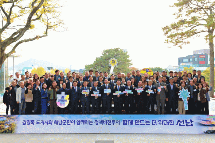 ±èÁö»ç´Â Áö³­ 2019³â Àü³² ºí·çÀÌÄÚ³ë¹Ì ÇÁ·ÎÁ§Æ®¸¦ ÅëÇØ ÇØ³²À» ºí·ç¿¡³ÊÁö, ºí·ç ½º¸¶Æ®½ÃƼ·Î Á¶¼ºÇϰíÀÚ Çß´ø °èȹÀÌ Á¤ºÎÀÇ ±¹Á¤°úÁ¦¿¡ ´ëºÎºÐ ¹Ý¿µµÉ Á¤µµ·Î Å« ¼º°ú¸¦ °ÅµÎ°í Àִٸ硰Áö³­ 7³â°£ ¾ÕÀÌ º¸ÀÌÁö ¾Ê´Â »óȲ¿¡¼­µµ Àγ»Çϰí, Àü³²µµ¿Í Çù·ÂÇØ ´õ Å« ¼ºÀ嵿·ÂÀ» ¸¸µé¾îÁÖ½Å ÇØ³²±º°ú ±º¹Îµé²² Áø½ÉÀ¸·Î °¨»çµå¸°´Ù¡±¸ç ¼Òȸ¸¦ ¹àÇû´Ù.