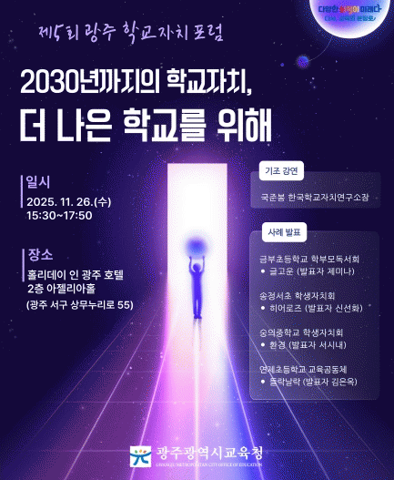 À̹ø ¡®±¤ÁÖ Çб³ÀÚÄ¡ Æ÷·³¡¯Àº ¡®2030³â±îÁöÀÇ Çб³ÀÚÄ¡, ´õ ³ªÀº Çб³¸¦¡¯¸¦ ÁÖÁ¦·Î, Çб³ÀÚÄ¡ÀÇ ÇöÀ縦 µ¹¾Æº¸°í ¹Ì·¡ ¹æÇâÀ» ÇÔ²² ¸ð»öÇϱâ À§ÇØ ¸¶·ÃµÆ´Ù.