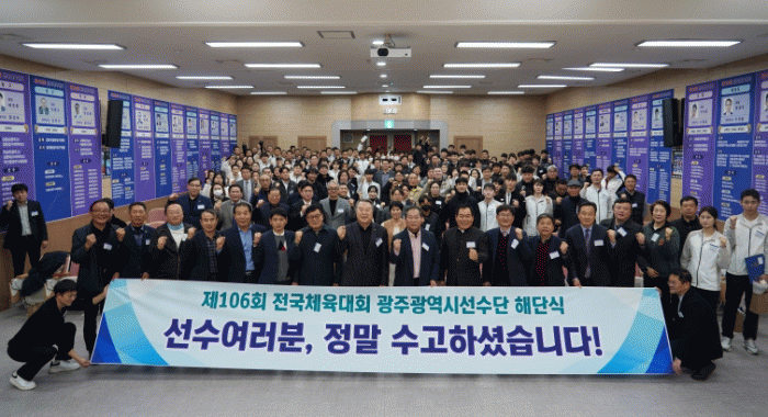 ±¤ÁÖ±¤¿ª½ÃüÀ°È¸(ȸÀå Àü°©¼ö)´Â 25ÀÏ ¿ÀÈÄ 2½Ã ±¹¹Î»ýȰ°ü ¼¼¹Ì³ª½Ç¿¡¼ Àü°©¼ö üÀ°È¸Àå, üÀü Âü°¡¼±¼ö´Ü, Á¾¸ñº° ȸÀå?Àü¹«ÀÌ»ç, °¨µ¶?ÄÚÄ¡ µî °ü°èÀÚ 200¿© ¸íÀÌ Âü°¡ÇÑ °¡¿îµ¥ ¡®Á¦106ȸ Àü±¹Ã¼À°´ëȸ ±¤ÁÖ¼±¼ö´Ü °á´Ü½Ä¡¯À» °³ÃÖÇß´Ù°í ¹àÇû´Ù.