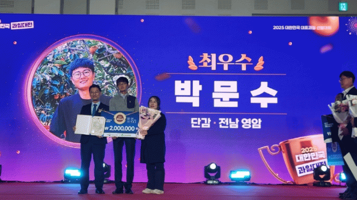 û³â ³ó¾÷ÀÎ ¹Ú¹®¼ö ÀþÀº³óºÎ³ó¿ø ´ëÇ¥ÀÇ ´Ü°¨ ¡®°¨Ç³¡¯ÀÌ ³ó¸²Ãà»ê½ÄǰºÎ ÁÖÃÖ, Çѱ¹°ú¼ö³óÇù¿¬ÇÕȸ¿Í »ê¸²Ã» ÁÖ°üÀ¸·Î 27ÀÏ ´ëÀüÄÁº¥¼Ç¼¾ÅÍ¿¡¼ ¿¸° ¡®2025 ´ëÇѹα¹ ´ëÇ¥°úÀÏ ¼±¹ß´ëȸ¡¯¿¡¼ ÃÖ¿ì¼ö»óÀ» ¹ÞÀº °Í.