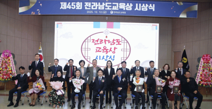 ¶ÇÇÑ Àü¶ó³²µµ±³À°»ó¿¡ ´ëÇØ ¡°Àü³² ±³À°ÀÇ ¹æÇâÀ» ¼¼¿ì°í, ¹Ì·¡¼¼´ë¸¦ À§ÇØ Á¶¿ëÈ÷ ¶¡ Èê·Á ¿Â ºÐµé²² µå¸®´Â Àü³² ±³À°°è ÃÖ°íÀÇ ¿µ¿¹¡±¶ó¸ç ¡°¿µ¿¹·Î¿î »óÀ» ¹Þ°Ô µÇ½Å ´Ù¼¸ ºÐÀº °¢ÀÚÀÇ ÀÚ¸®¿¡¼­ ´©±¸º¸´Ù Çå½ÅÀûÀ¸·Î Àü³² ±³À°À» ÁöÄÑ ¿À½Å ºÐµé¡±À̶ó°í °­Á¶Çß´Ù.