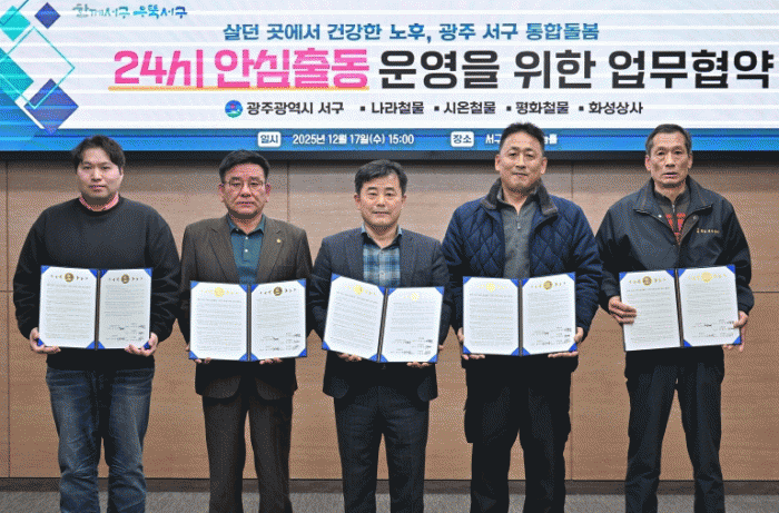 ±¤ÁÖ±¤¿ª½Ã ¼­±¸°¡ ÁֹΠÀÏ»ó ¼Ó ºÒÆíÀ» ½Å¼ÓÇÏ°Ô ÇØ¼ÒÇϱâ À§ÇØ ÆÈÀ» °È¾îºÙ¿´´Ù. ¼­±¸´Â 17ÀÏ ¼­±¸Ã» ³ª´®È¦¿¡¼­ °ü³» ÂøÇѰ¡°Ô 4°÷°ú ÇÔ²² ¡®24½Ã ¾È½ÉÃ⵿¡¯ »ç¾÷ÀÇ ¾ÈÁ¤Àû ¿î¿µÀ» À§ÇÑ ¾÷¹«Çù¾àÀ» ¸Î°í ºóÆ´¾ø´Â µ¹º½ ¼­ºñ½º Á¦°ø¿¡ Çù·ÂÇϱâ·Î Çß´Ù. À̳¯ Çù¾à½Ä¿¡´Â ±è¼º¹è ºÎ±¸Ã»ÀåÀ» ºñ·ÔÇØ À±¼ø¼· È­¼º»ó»ç ´ëÇ¥, ÀÌ¿µÀÏ Æòȭö¹° ´ëÇ¥, ÁÖÀç½Ä ³ª¶óö¹° ´ëÇ¥, ÀÌ¿µÁÖ ½Ã¿Âö¹° ´ëÇ¥°¡ Âü¼®Çß´Ù. ÀÌ ¾÷üµéÀº ¸Å¿ù Á¤±â ±âºÎ·Î ³ª´®À» ½ÇõÇÏ´Â ¡®ÂøÇѰ¡°Ô¡¯·Î ÀÌ¿ôµ¹º½ ¿ªÇÒ¿¡µµ Àû±ØÀûÀ¸·Î Âü¿©ÇÏ°í ½Í´Ù´Â ¶æÀ» ¹àÇû´Ù.