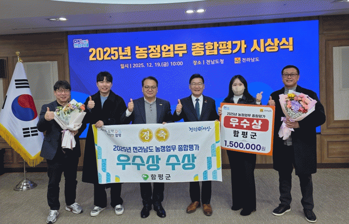 ÇÔÆò±ºÀº Áö³ 19ÀÏ Àü¶ó³²µµÃ» ¼ÀçÇʽǿ¡¼ ¿¸° 2025³â Àü³² ³óÁ¤¾÷¹« Á¾ÇÕÆò°¡¿¡¼ ¿ì¼ö»óÀ» ¼ö»óÇß´Ù°í 22ÀÏ ¹àÇû´Ù.