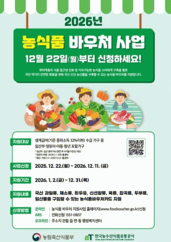 ¹«¾È±ºÀº 2025³â 12¿ù 22ÀϺÎÅÍ 2026³â ³ó½Äǰ ¹Ù¿ìó Áö¿ø»ç¾÷ ½ÅûÁ¢¼ö¸¦ ½ÃÀÛÇÑ´Ù°í ¹àÇû´Ù.
