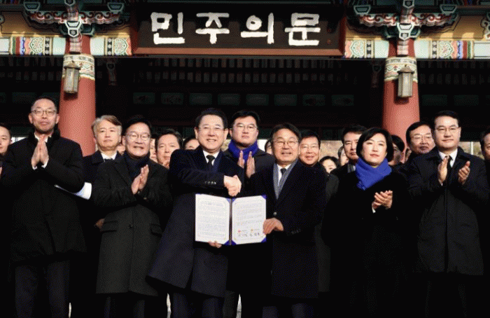 ÀÌ¿¡ µû¶ó ¾ç ½Ã?µµ´Â À̹ø °øµ¿¼±¾ðÀ» ÅëÇØ ±¤ÁÖ?Àü³² ÇàÁ¤ÅëÇÕÀ» ´õ ÀÌ»ó ¹Ì·çÁö ¾Ê°í Áï°¢ ÃßÁøÇϱâ·Î ÇÕÀÇÇß´Ù.
