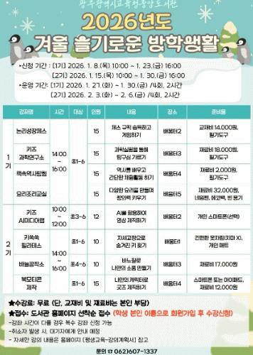 ±¤ÁÖÁß¾Óµµ¼°ü ±èÁ¤Èñ °üÀåÀº ¡°°Ü¿ï¹æÇÐÀ» ¸ÂÀÌÇÑ ÃʵîÇлýµéÀÌ µµ¼°ü¿¡¼ ÁغñÇÑ ´Ùä·Î¿î ÇÁ·Î±×·¥¿¡ Âü¿©ÇØ À¯ÀÍÇÑ ½Ã°£À» º¸³»±æ ¹Ù¶õ´Ù¡±°í ¸»Çß´Ù.