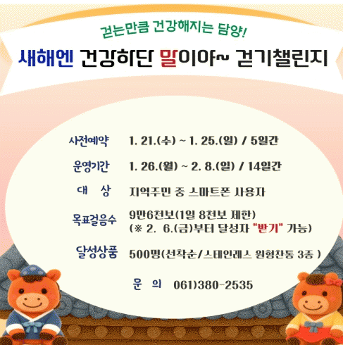 1¿ù 26ÀϺÎÅÍ 2¿ù 8ÀϱîÁö ¡®»õÇØ¿£ °Ç°­ÇÏ´Ü ¸»À̾ߡ¯ °È±â 縰Áö ÁøÇà