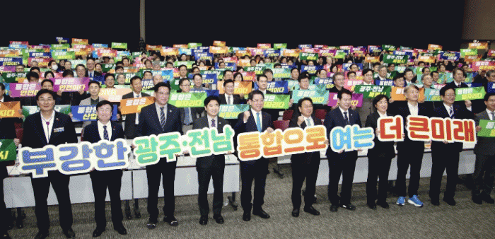 ÇùÀÇȸ À§¿øµéÀº °áÀǹ®À» ÅëÇØ ¡°¿ì¸®´Â Áö±Ý ±¤ÁÖ¿Í Àü³²ÀÌ Çϳª·Î ÈûÀ» ¸ð¾Æ »õ·Î¿î ¹Ì·¡·Î ³ª¾Æ°¡±â À§ÇÑ ¿ª»çÀû ÀüȯÁ¡¿¡ ¼ ÀÖ´Ù.¡±¸é¼ ¡°320¸¸ ½Ã¡¤µµ¹ÎÀÇ ¿¸ÁÀ» ¹Þµé¾î ÇàÁ¤ ÅëÇÕÀÇ ¼º°øÀû ¿Ï¼ö¿Í Ưº°¹ý Á¦Á¤¿¡ ³ª¼ÀÚ.¡±°í ´ÙÁüÇß´Ù. À̾î, ¡ã ½Ã¡¤µµ¹Î ÀÚ¹ßÀû Âü¿©¿Í °ø°¨´ë È®»ê ¡ã Áö¿ª °£ »ó»ý¡¤ÈÇÕ ¹ÎÁÖÀû ÅëÇÕ ¸ðµ¨ ±¸Çö ¡ã ÃæºÐÇÑ ÀÚÀ²±Ç¡¤À§»ó º¸ÀåµÈ Ưº°¹ý Á¦Á¤ ¡ã ¹Ì·¡»ê¾÷¡¤ÀÏÀÚ¸® ±â¹Ý È®Ãæ À§ÇÑ °æÁ¦°øµ¿Ã¼ ±¸Ãà µîÀ» °áÀÇÇß´Ù.